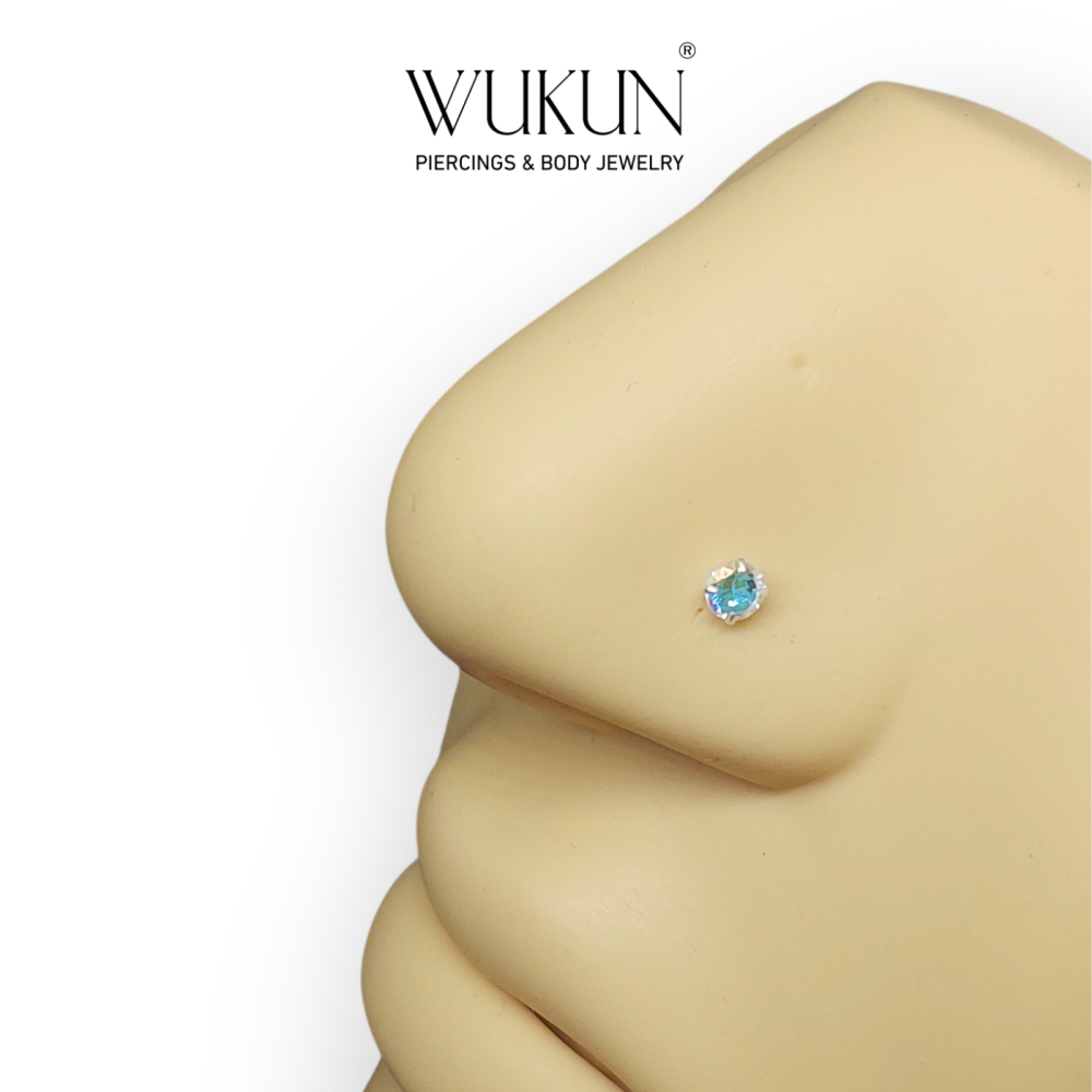 زمام بيرسينج فضة 925S شنكار بفص عاكس ألوان لامع وسط.