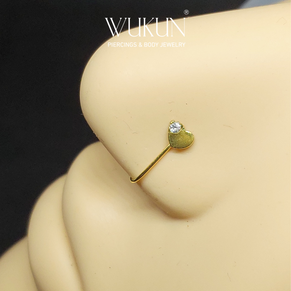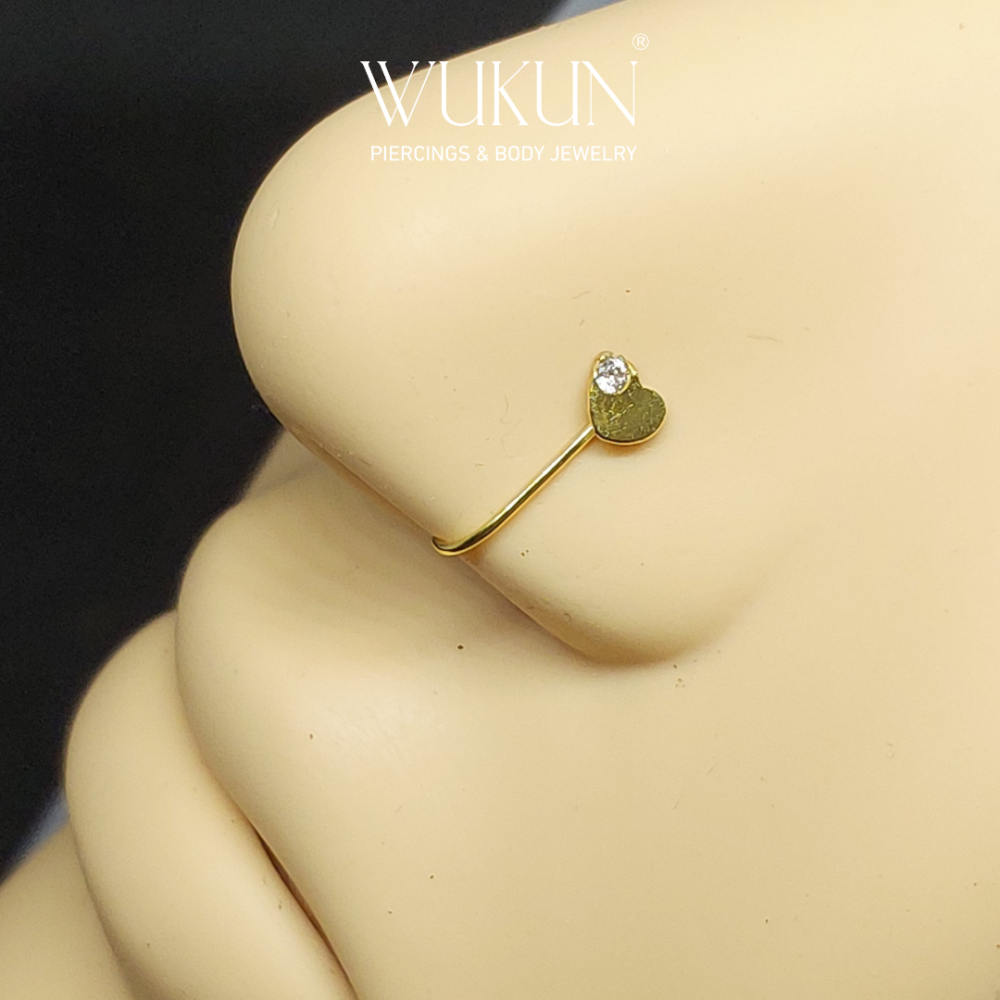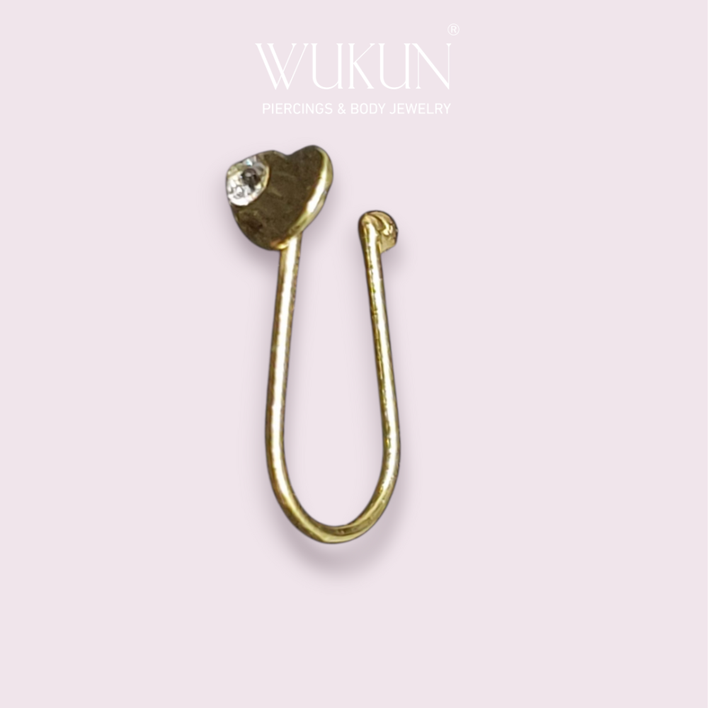 زمام ذهب عيار 18k بدون خرم بشكل قلب بفص صغير في الطرف.